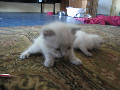 And last but not least the third batch of kittensWe have soooooooo many kittens. It's unbelievable, there is 16 kittens in all (there was 17 but one passed away). The first batch we had were all white, I've posted pics of them before (there is 5 in the first batch). But the second batch we had there was 2 white, 1 black one and 1 brown one (the brown one died, we were all pretty sad). Then in our last batch there was 2 black ones, 1 brown one, 1 grey one and 3 white ones (there is 7 in all). So does anyone want a kitten? Just leave a comment and I'll be sure to get back with you. Ha-ha!!! Sorry I didn't post yesterday, but did you? Yea that's what I thought. LOL!!! Now you know that we have free kittens and that I didn't post yesterday, is there anything else I missed to tell you. Oh yes, bye! God bless.